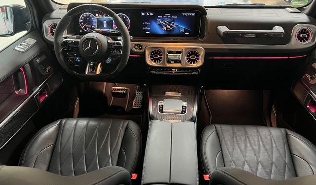 Der Mercedes-Benz G 63 AMG Facelift vereint kraftvolle 585 PS mit ikonischem Design und moderner Technik. Mit Carbon-Elementen, einem Burmester-Soundsystem und einer 360°-Kamera bietet er sowohl außergewöhnliche Performance als auch höchsten Komfort und Sicherheit – der perfekte Luxus-SUV für anspruchsvolle Fahrer.